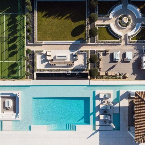 Ta trzypoziomowa rezydencja oferuje spektakularne widoki na Morze Śródziemne i jest otoczona bujną zielenią, zapewniając prywatność i spokój. Zewnętrzne przestrzenie nieruchomości są arcydziełem, z basenem bez krawędzi z zatopioną strefą relaksu, pergolą z kominkiem i licznymi strategicznie rozmieszczonymi strefami relaksu. Rozległa działka obejmuje ekstrawagancki ogród, prywatny kort do padla i miejsce do spożywania posiłków na świeżym powietrzu z grillem, a wszystko to dostępne jest przez prywatny podjazd dla dodatkowej wygody i bezpieczeństwa.
