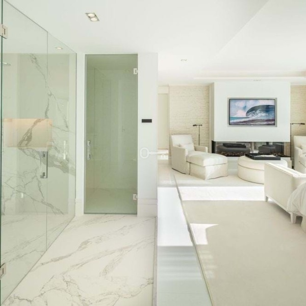 Wejdź do środka, aby doświadczyć płynnego połączenia śródziemnomorskiej architektury z nowoczesnym akcentem. Wnętrza są świadectwem elegancji i dbałości o szczegóły, z formalną częścią dzienną prowadzącą do otwartego układu nieformalnego salonu, jadalni i nowoczesnej kuchni. Kuchnia oferuje najnowocześniejsze urządzenia, dużo miejsca do przechowywania i centralną wyspę, a wszystko to z zapierającym dech w piersiach widokiem na morze. W willi znajdują się cztery duże sypialnie z łazienkami, każda starannie urządzona, a główna sypialnia kradnie światło reflektorów z kominkiem, garderobą i luksusową łazienką z prysznicem, samodzielną wanną i podwójną toaletką. Główna sypialnia oferuje bezpośredni dostęp do tarasu, zapewniając mieszkańcom niezrównane widoki i dodatkowy luksus.