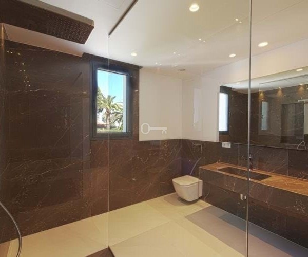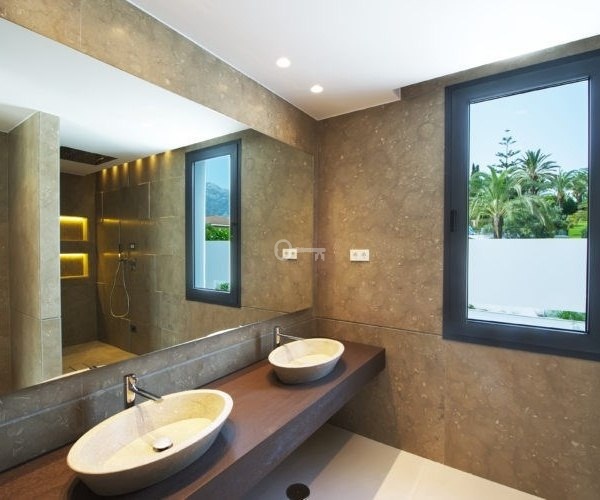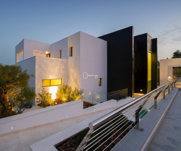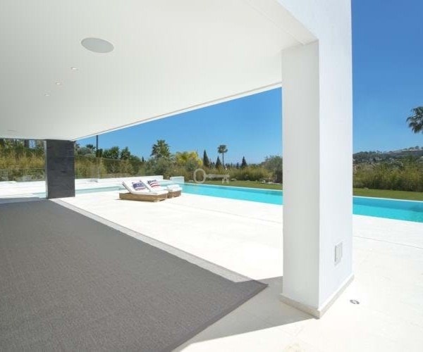 Zupełnie nowa designerska willa z widokiem na pole golfowe Las Brisas, położona w drugiej linii od pola golfowego na podwyższonej narożnej działce o powierzchni 2500 m2. Bezobsługowe płaskie ogrody z bambusowym ogrodzeniem, zapewniające całkowitą prywatność. Kaskadowy wodospad wejściowy, wjazd do garażu przez bramy bezpieczeństwa do garażu podziemnego i parking na dodatkowe 3 samochody. Ogromny basen bez krawędzi z neonowym oświetleniem i częściowym widokiem na morze od strony zachodniej.