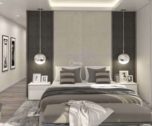Główna sypialnia z luksusową łazienką i dostępem do tarasu nad basenem w kierunku morza i pola golfowego. Dwie kolejne sypialnie z łazienkami. Galeria korytarz z widokiem na salon poniżej.