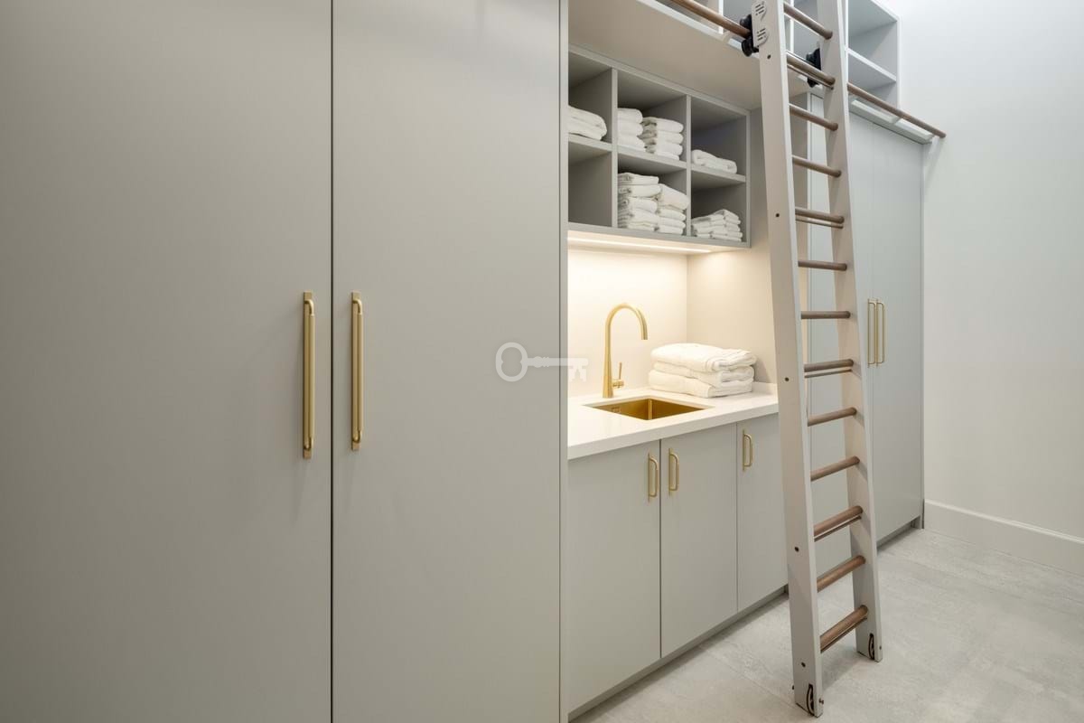 Rozmieszczony na trzech poziomach dom obejmuje sześć sypialni i pięć łazienek, starannie rozmieszczonych, aby zmaksymalizować przestrzeń, światło i przepływ. Układ odzwierciedla staranne planowanie, a każdy obszar został zaprojektowany tak, aby usprawnić codzienne życie. Główne piętro na otwartym planie łączy elegancką, w pełni wyposażoną kuchnię z urządzeniami Siemens, przestronną jadalnię, strefę telewizyjną i wypełniony światłem salon, który otwiera się na zewnętrzne tarasy z kuchnią na świeżym powietrzu i jadalnią. Każda z trzech sypialni na tym piętrze ma własną łazienkę, co zapewnia prywatność gościom lub członkom rodziny. Praktyczności dodaje toaleta dla gości. Wszystkie sypialnie i klatki schodowe mają drewniane podłogi w jodełkę pochodzące ze Szwecji.
