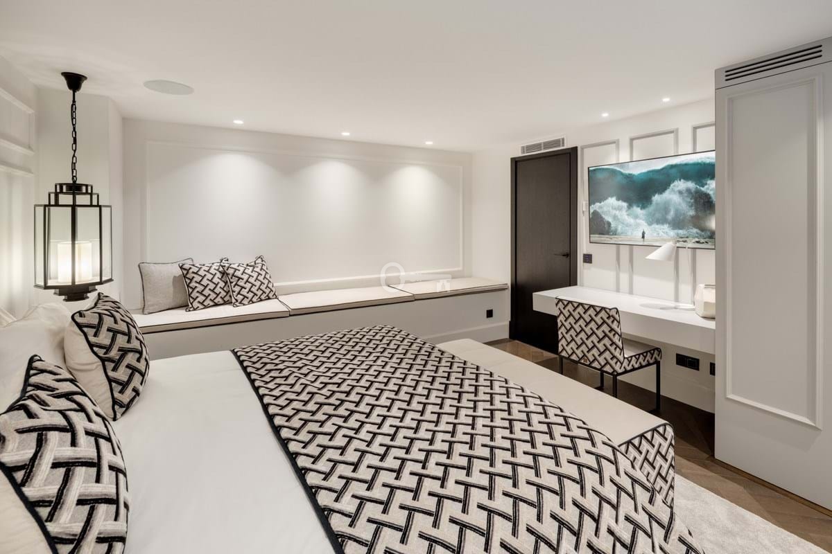 Całe najwyższe piętro jest przeznaczone na apartament główny, tworząc prywatne miejsce, które obejmuje garderobę, elegancką łazienkę i dostęp do dwóch zacisznych tarasów. Te zewnętrzne przestrzenie oferują widoki na morze i bezpośredni dostęp do prywatnej wanny z hydromasażem, dodając luksusową warstwę do doświadczenia.