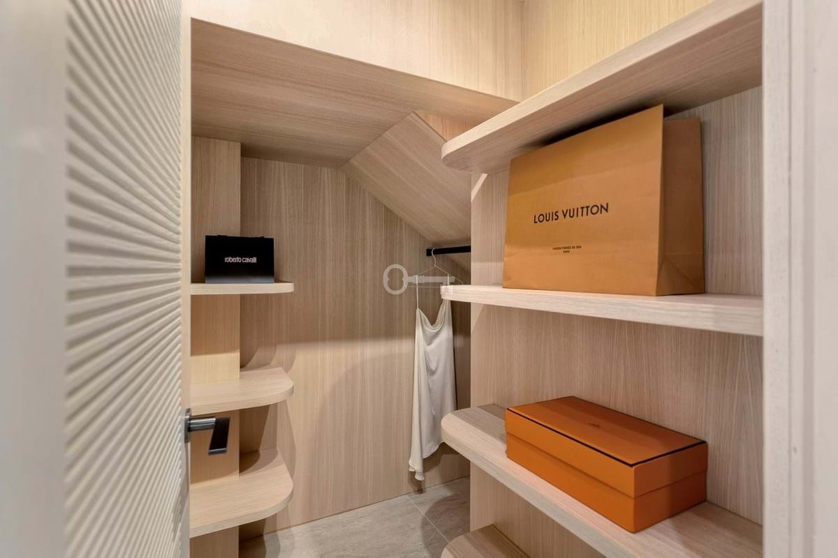 Składa się z trzech poziomów. Parter z otwartym układem kuchni, jadalni i salonu zapewnia towarzyską i przyjazną dla użytkownika przestrzeń. Pięknie wykonana kuchnia najwyższej jakości z porcelanowymi blatami dopasowanymi do książek, urządzeniami Gaggenau i ogrzewaniem podłogowym. Piętro uzupełnia formalna jadalnia dla maksymalnie 8 osób i przytulny salon uzupełniony meblami wykonanymi przez klienta, unikalnymi dla tego projektu.