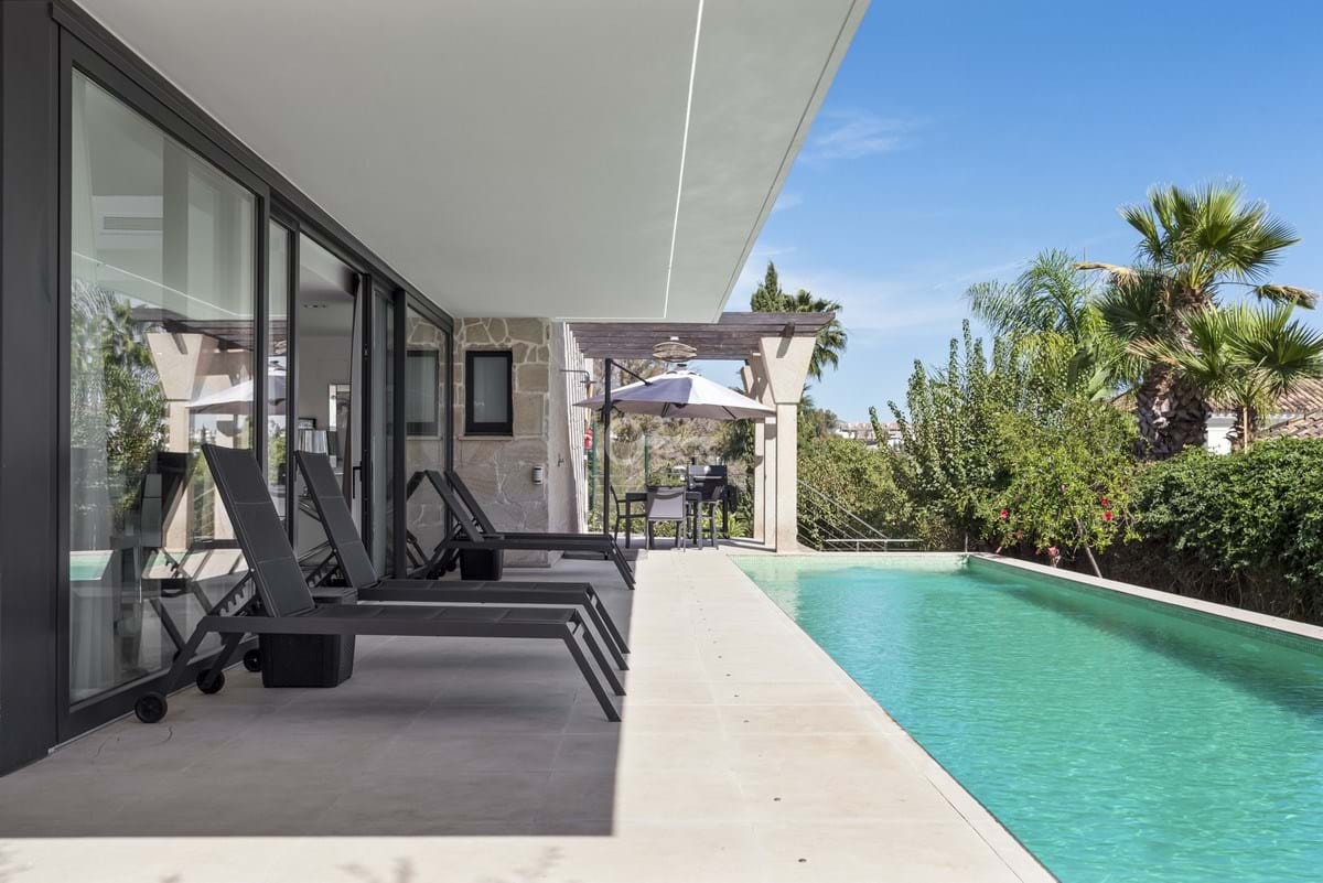 Położona w prestiżowej enklawie La Cerquilla, Villa La Cerquilla to sanktuarium współczesnego luksusu otoczone pięknem Marbellas Golf Valley. Za prywatną bramą rezydencja otwiera się na pięć przestronnych dwuosobowych sypialni, w tym wyrafinowany apartament główny z własną łazienką. Dla większej wszechstronności, oddzielny apartament dla gości lub personelu oraz dedykowany pokój serwisowy zapewniają komfort i prywatność dla każdego stylu życia.