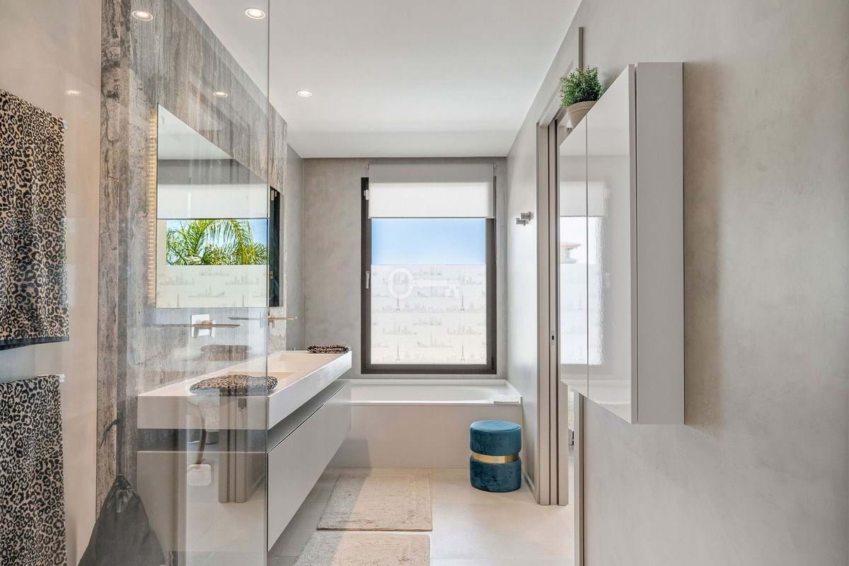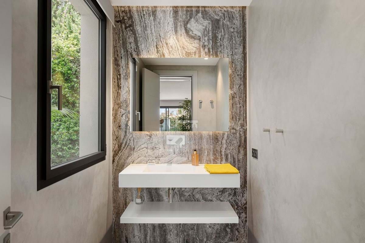 Witamy w tym nowoczesnym i bardzo dobrze zbudowanym domu w dolnej części Nueva Andalucia. Po wejściu wita nas duża otwarta kuchnia, która prowadzi do jadalni i salonu, skąd można uzyskać dostęp do dużego zadaszonego tarasu i basenu z dużą ilością miejsca do opalania i prysznicem na świeżym powietrzu. Na głównym piętrze znajduje się sypialnia z łazienką, obecnie używana jako biuro. Na pierwszym piętrze znajdują się 3 sypialnie, wszystkie z dostępem do zadaszonego tarasu. Stąd prowadzą schody do solarium, które zostało wyposażone w panele słoneczne, pozostawiając jednak miejsce na stworzenie przestrzeni rozrywkowej. W piwnicy znajduje się pralnia, druga toaleta dla gości, sypialnia, duży pokój, który może służyć jako sala kinowa itp. oraz duży garaż na maksymalnie 4 samochody. Na wszystkie piętra prowadzą schody lub winda. Technologia w domu jest nowoczesna z wodnym ogrzewaniem podłogowym zasilanym przez system aerotermiczny, klimatyzacja jest przez system Airzone, filtry wody & panele słoneczne sprawiają, że ten dom jest bardzo wydajny do życia. Dom w bardzo centralnej pozycji sprawia, że jest to idealne miejsce do zamieszkania przez cały rok lub dom wakacyjny z dodatkową zaletą bycia atrakcyjną nieruchomością do wynajęcia ze względu na jej wielkość i lokalizację.