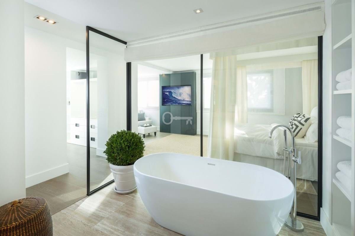 Kolorystyka jest uspokajająca i spokojna, z mieszanką neutralnych odcieni, które doskonale uzupełniają naturalne otoczenie. Salon i jadalnia są pięknie zaprojektowane, z dużą ilością miejsca na rozrywkę dla gości lub po prostu relaks i odpoczynek. Przestrzeń zewnętrzna willi jest równie imponująca, na nowo definiując życie wewnątrz i na zewnątrz dzięki swoim dużym proporcjom i wielu obszarom do wygrzewania się w śródziemnomorskim klimacie.