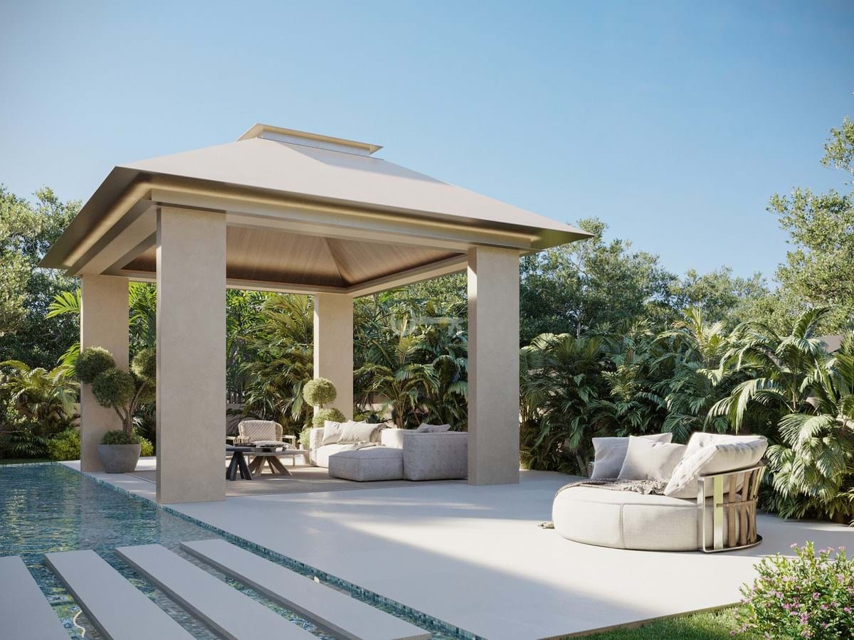 Współczesna architektura willi płynnie łączy się z naturalnym otoczeniem, tworząc luksusowe i spokojne miejsce do życia.
