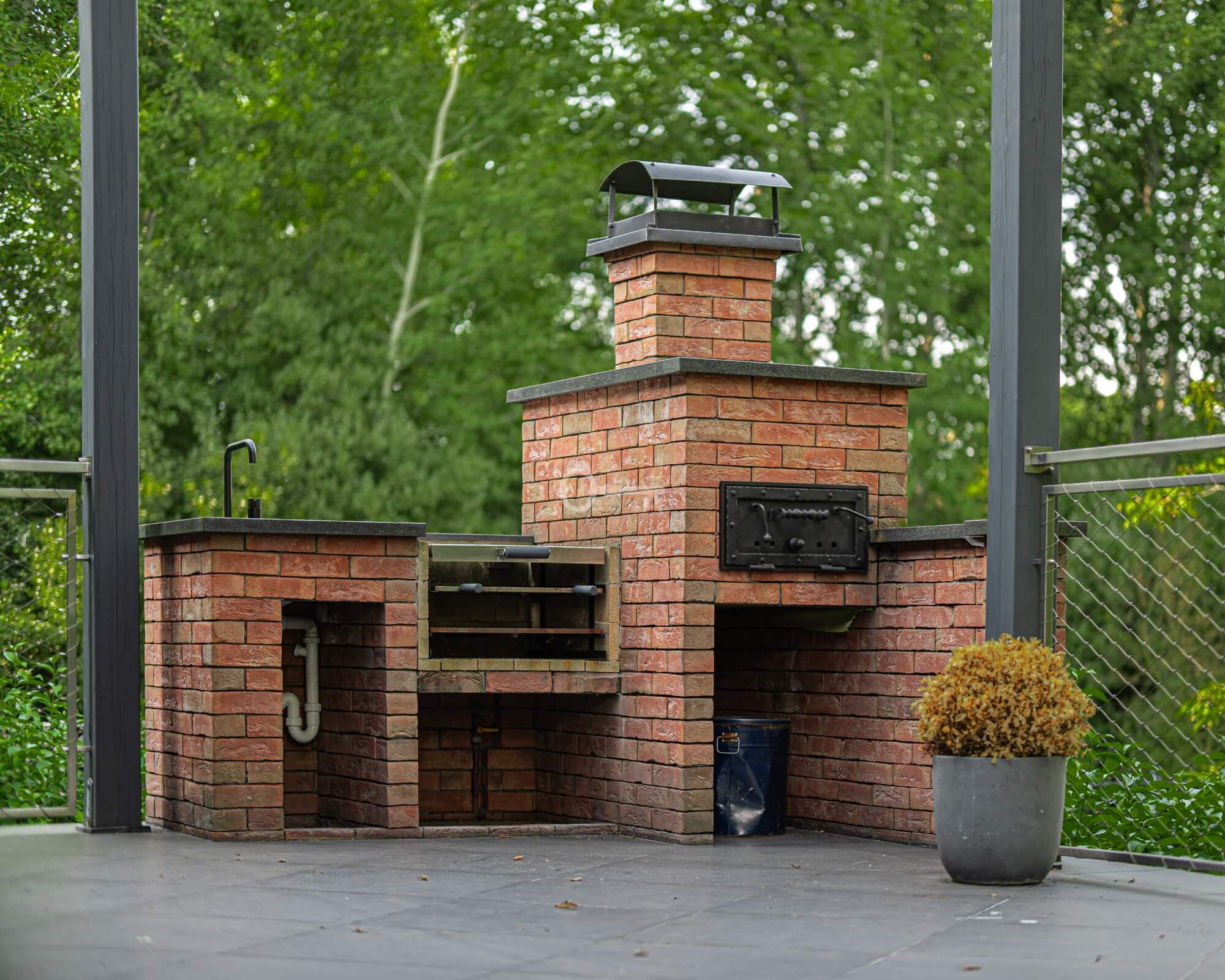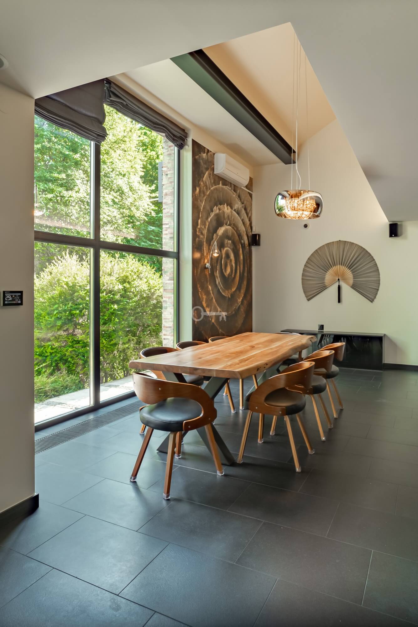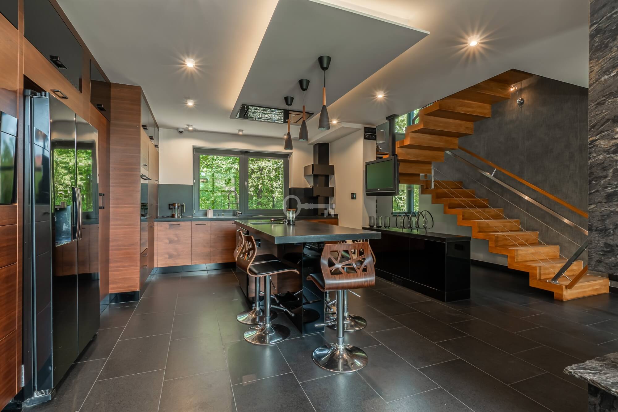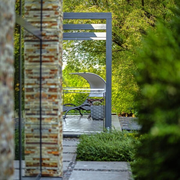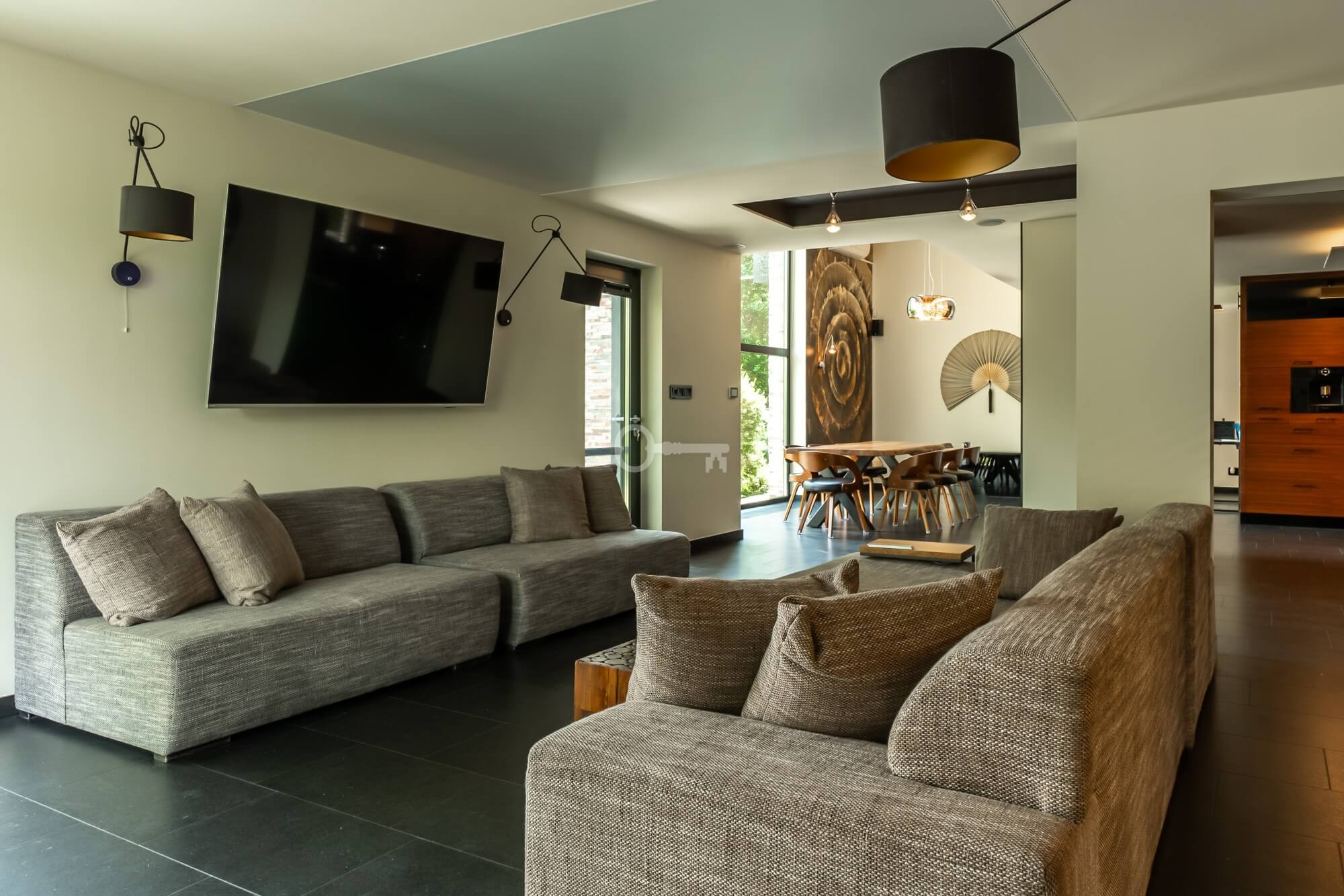 Jednocześnie, to prawdziwa prywatna rezydencja. Właściwie jedynym sąsiadem jest chroniony rezerwat przyrody, a w domu po prostu przyjemnie się przebywa. Jets niezwykle przestronny, bardzo dobrze doświetlony dzięki imponującym przeszkleniom i otoczony z każdej strony zielenią. Dodatkowo, poza przestrzenią wewnątrz, atrakcyjna jest też przestrzeń dookoła domu dzięki intymnemu, dużemu tarasowi (z własnym piecem do pizzy) oraz obszernej działce.