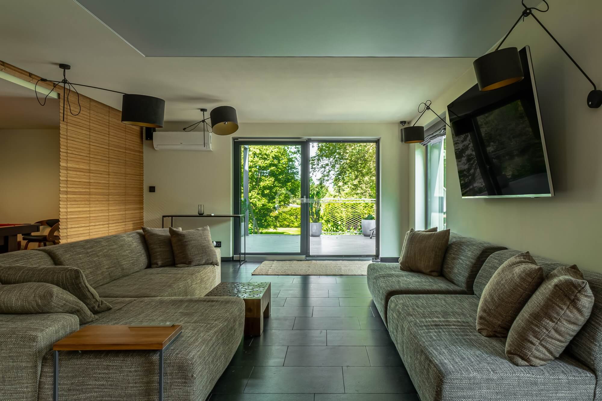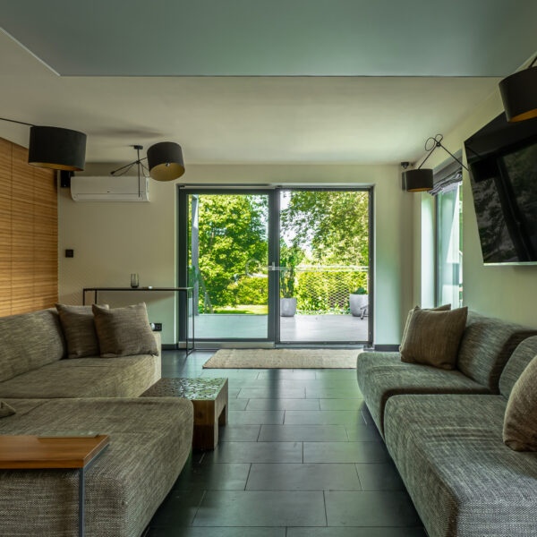 * Salon z wyjściem na taras i do ogrodu,