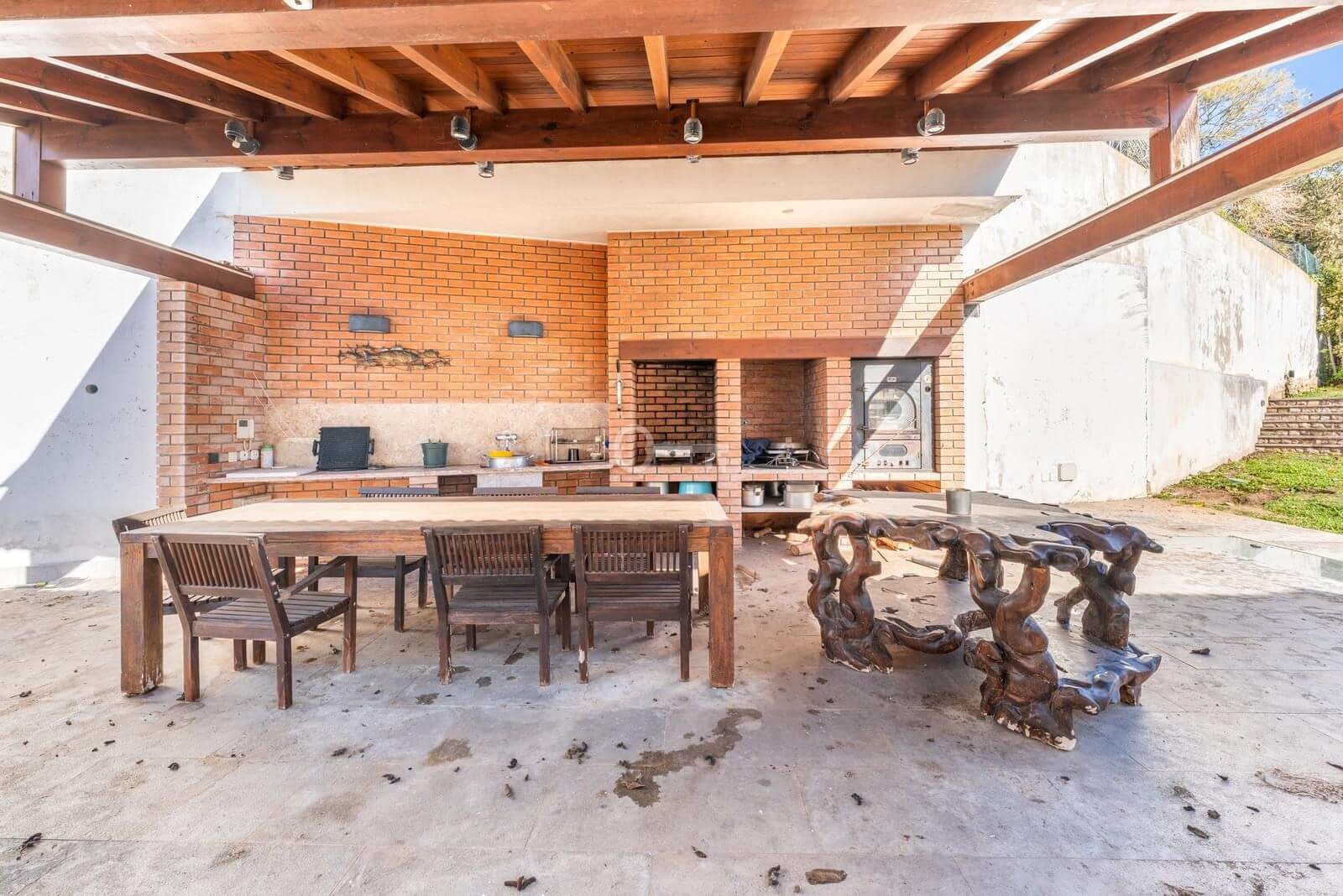 Kuchnia jest równie przestronna i w pełni wyposażona, z centralną wyspą, jadalnią i bezpośrednim dostępem do ogrodu, tworząc funkcjonalną i przyjazną przestrzeń.