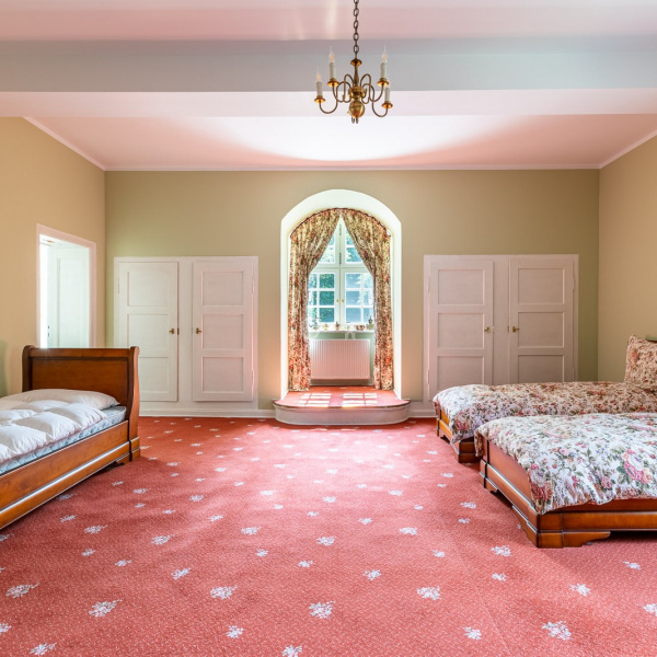 Budynek pałacowy dysponuje 10 pokojami i apartamentami oferując łącznie 20 miejsc noclegowych. Budynek posiada trzy kondygnacje w tym poddasze użytkowe oraz część podpiwniczona, w której znajduje się kuchnia i kotłownia. W całym obiekcie można korzystać z bezprzewodowego dostępu do Internetu.