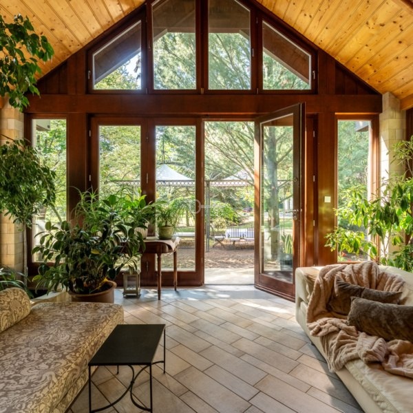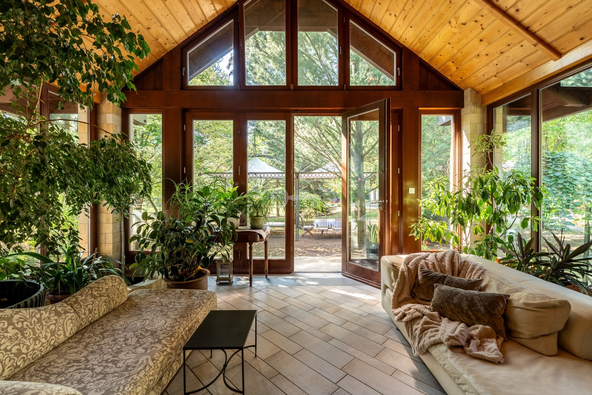 * przeszklona oranżeria z wyjściem do ogrodu,