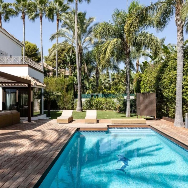 Piękna w pełni odnowiona willa 300 metrów od plaży. Położona w pobliżu plaży Mistral, krótka droga od Puerto Banus i Marbelli.