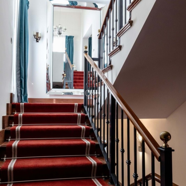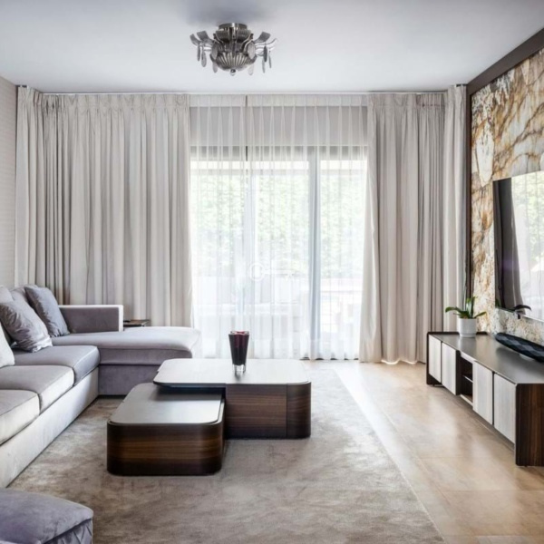 Willa posiada przestronny salon, w pełni wyposażoną kuchnię, gabinet, główną sypialnię z garderobą na pierwszym piętrze, dwie sypialnie i dwie łazienki z tarasem i balkonem na drugim piętrze.