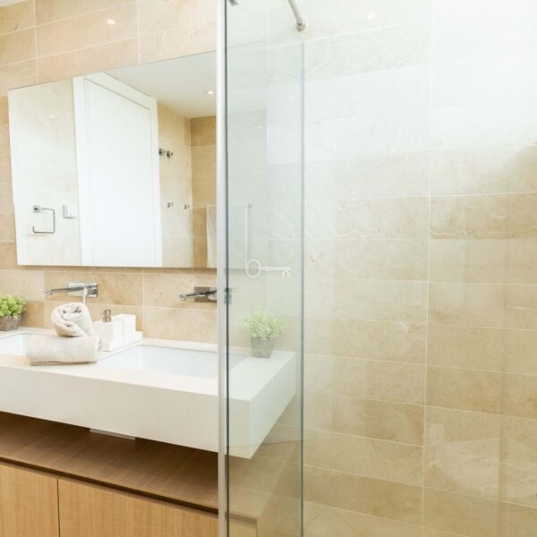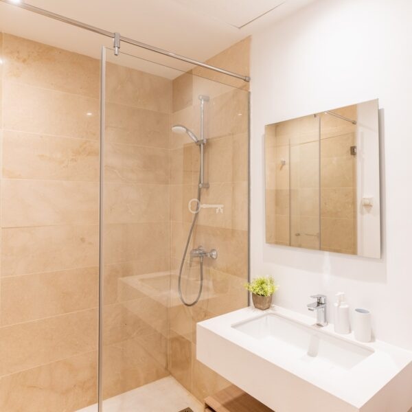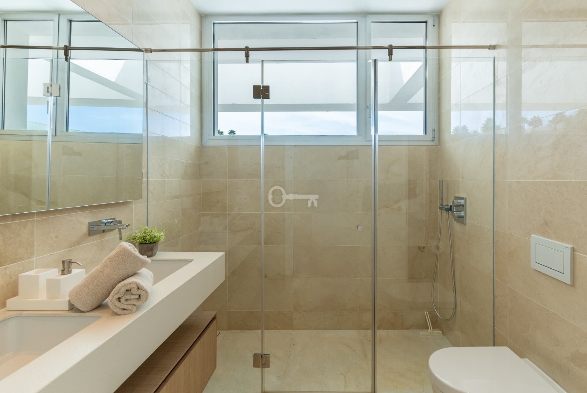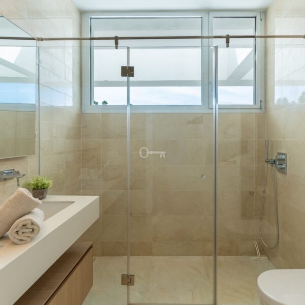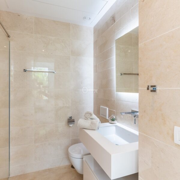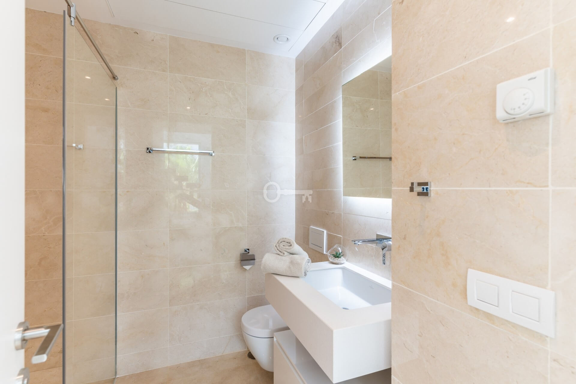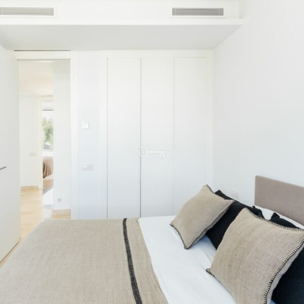 Główny apartament znajduje się na pierwszym piętrze i obejmuje wbudowane szafy, łazienkę oraz prywatny taras. Dalej znajdują się 2 sypialnie gościnne z wbudowanymi szafami, z których roztacza się widok na ogrody, oraz 1 łazienka. Wszystkie łazienki mają wykonane na zamówienie szafki pod umywalką.