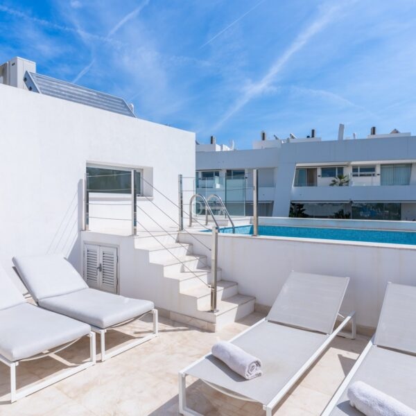 Kamienica posiada również duży taras na dachu z podgrzewanym małym basenem, dużą częścią wypoczynkową i jadalnią oraz pięknym widokiem na morze w kierunku zatoki Marbella i Gibraltaru. Z basenu można podziwiać piękny zachód słońca każdego wieczoru.