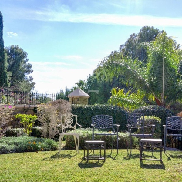 Ta nieskazitelna nieruchomość otoczona jest wspaniałym ogrodem z podgrzewanym basenem, do którego można wejść z dolnego poziomu willi, a główne wejście cieszy się uroczą fontanną otoczoną różnymi roślinami.