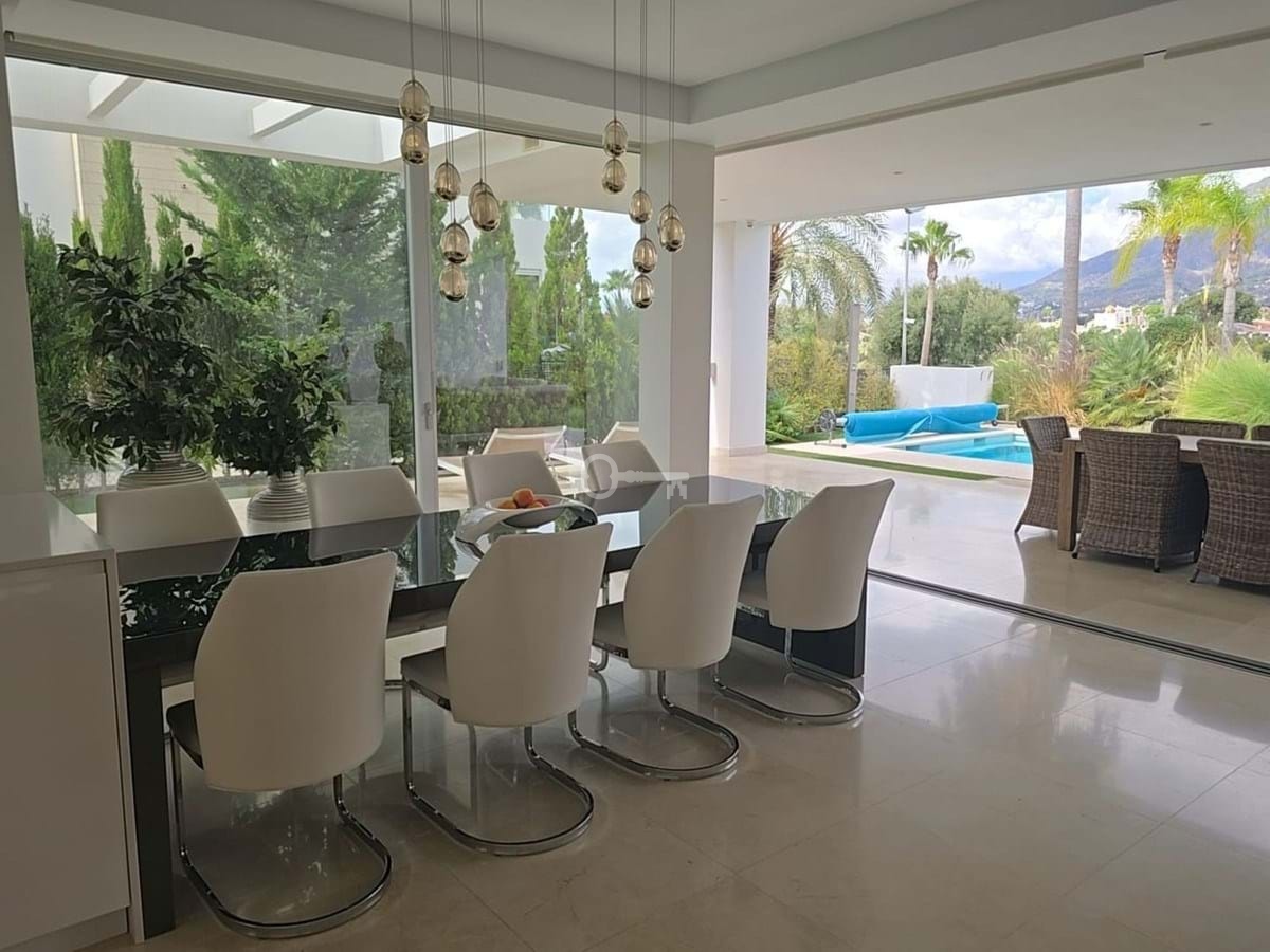 Ta luksusowa, nowoczesna willa znajduje się w dzielnicy mieszkalnej Río Real „La Finca de Marbella”, 15 minut spacerem od plaży (restauracja „Trocadero Arena”), 5 minut jazdy samochodem od centrum Marbelli i 15 minut od Puerto Banús. Willa z 3 sypialniami składa się z dwóch poziomów, 2 sypialni na drugim piętrze z dużym tarasem ze spektakularnym widokiem na góry, miasto i częściowo morze oraz 1 sypialni na parterze. Każdy pokój wyposażony jest w eleganckie meble i łazienkę. Na parterze znajduje się duży salon i jadalnia połączone z kuchnią na otwartym planie. Okna sięgające od podłogi do sufitu umożliwiają integrację obszarów wewnętrznych i zewnętrznych, co czyni je wyjątkowo przyjemnymi. Willa posiada własny prywatny basen z podgrzewaną wodą, zamknięty prywatny parking na 2 samochody i tropikalne rośliny w całym ogrodzie. Ogrzewanie podłogowe, klimatyzacja, system alarmowy i kamery, wszystko dla komfortu życia.