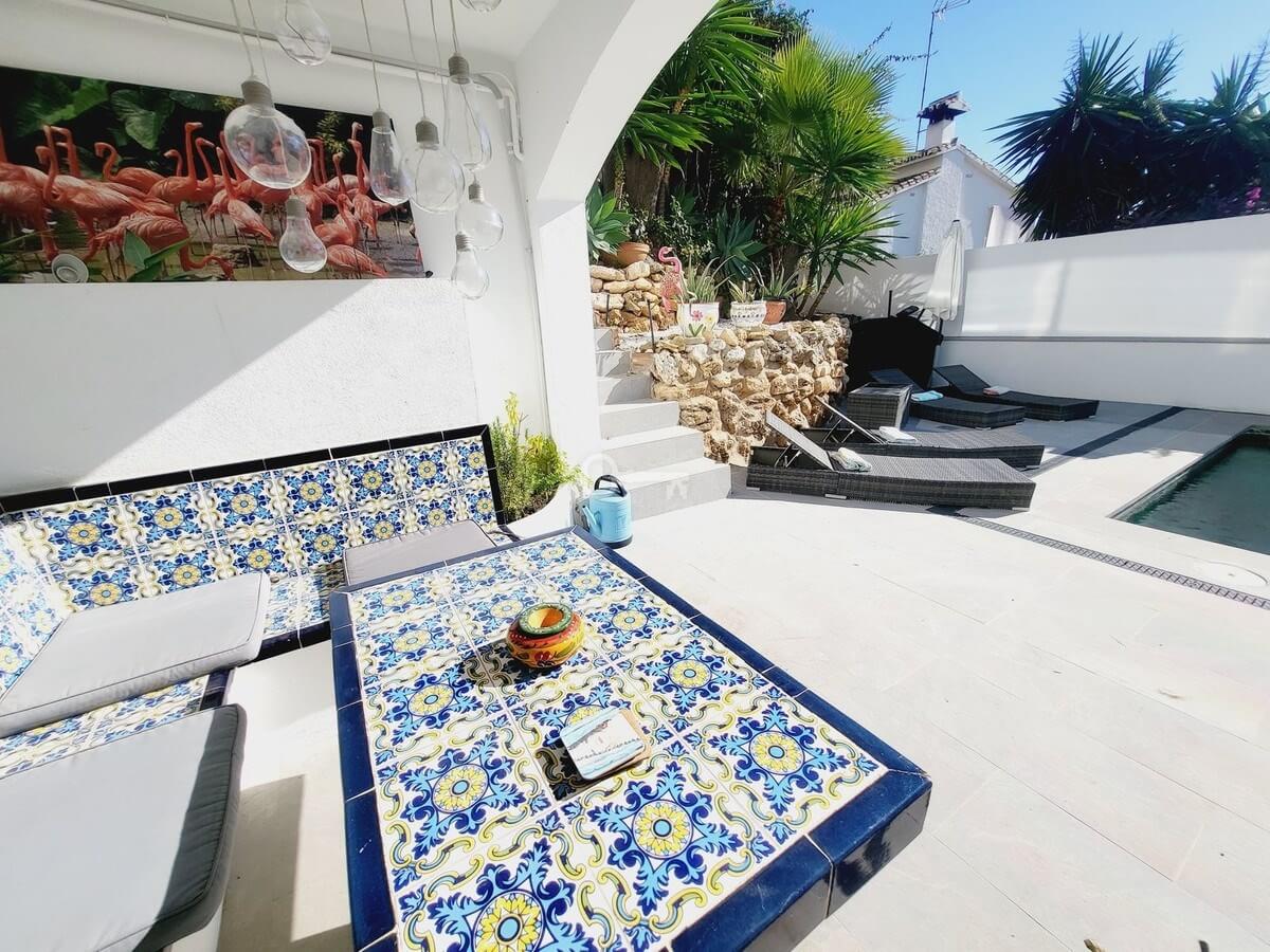 BEAUTIFULLY PRESENTED WITH MANY RECENT UPGRADES BY THE CURRENT OWNERS WHICH INCLUDE: A STYLISH NEW KITCHEN, GLASS AND CHROME BALUSTRADES, REFURBISHED GUEST STUDIO WITH KITCHEN AND SHOWER ROOM, STUNNING NEW POOL AND TERRACES SET WITHIN A LOW MAINTAINANCE AND LANDSCAPED GARDEN. THESE UPGRADES COMPLEMENT PERFECTLY THE ORIGINAL DESIGN AND LAYOUT OF THE PROPERTY WHICH COMPRISES: ENTRANCE AND HALLWAY LEADING TO GUEST CLOAK-ROOM, KITCHEN, OPEN-PLAN LOUNGE AND DINING ROOM AND STAIRS DOWN TO THE BEDROOM LEVEL. THE VIEWS FROM THE LOUNGE AND DINING ROOM ARE A SIGHT TO BEHOLD WITH TWO SETS OF PATIO DOORS LEADING OUT TO A WRAP-AROUND TERRACE THAT ALSO HAS A DINING AREA THAT CONNECTS TO THE KITCHEN.
