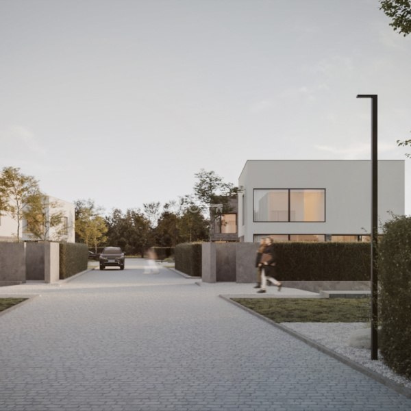 Wielokrotnie nagradzani architekci z pracowni MooMoo to specjaliści w projektowaniu ekskluzywnych domów. Bryły budynków na osiedlu nawiązują stylem do szkoły Bauhausu, tworząc proste, kubistyczne formy przenikające się w niepowtarzalny sposób.
