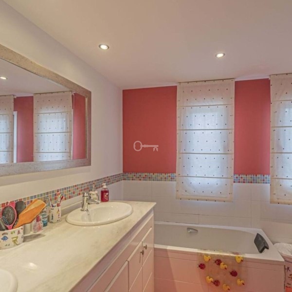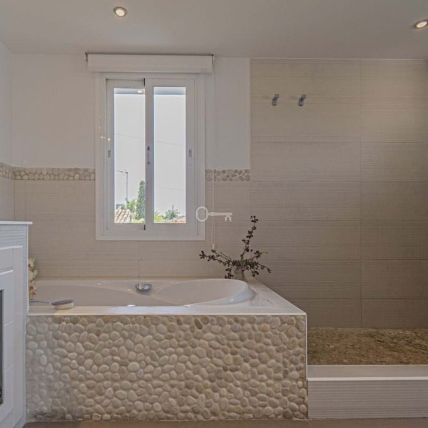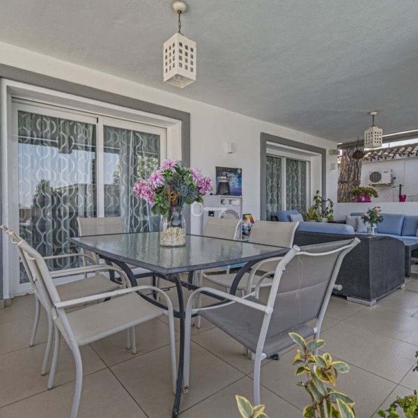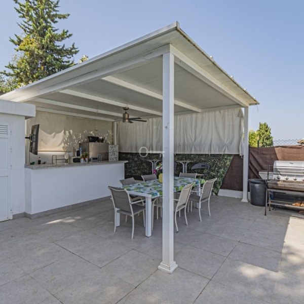 Na zewnątrz znajduje się hojna działka o powierzchni 650 m² z ogrodem i prywatnym basenem, idealna do cieszenia się śródziemnomorskim klimatem przez cały rok.