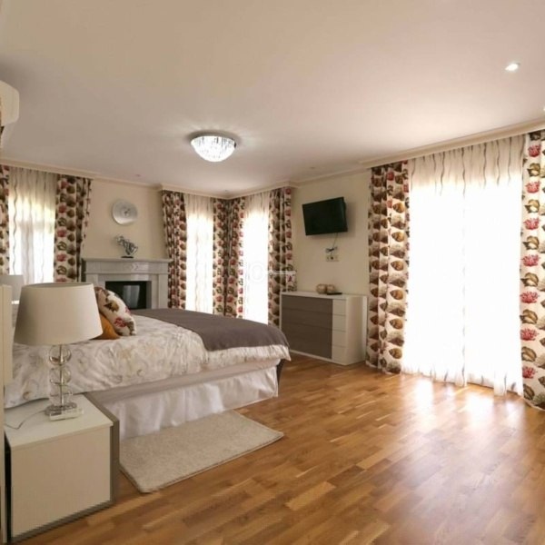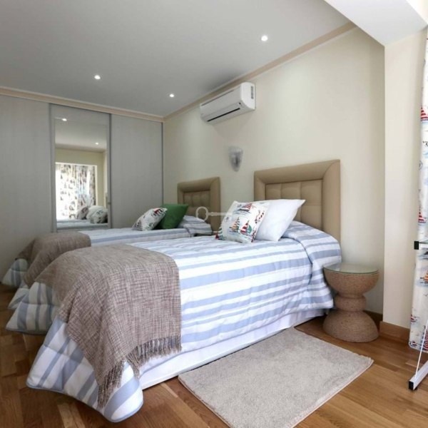 Główna sypialnia ma kominek na jednej ścianie. Łazienki są przestronne i wyposażone w oddzielne prysznice i wannę z umywalkami, narożne prysznice i bidety w obu pokojach. Z obu sypialni jest mnóstwo naturalnego światła z pełnowymiarowymi drzwiami na górny taras. Podłogi wyłożone są drewnem o bardzo wysokiej jakości i standardzie. W apartamencie dla gości znajduje się salon/jadalnia, przestronna sypialnia, w pełni wyposażona kuchnia i łazienka. Bardzo jasny i naturalny apartament gościnny z oknami doprowadzającymi światło z drzwi patio i pełnowymiarowych okien w tej części nieruchomości. Wewnątrz bramy nieruchomości znajduje się parking na 2 samochody, a więcej miejsc parkingowych jest dostępnych na ulicy.