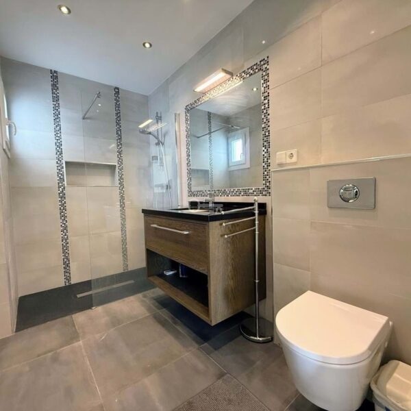 W willi znajdują się trzy przestronne sypialnie, każda z własną łazienką i wbudowanymi szafami. Salon z designerskim kominkiem płynnie przechodzi we w pełni wyposażoną kuchnię na otwartym planie, zachęcającą zarówno do codziennego życia, jak i rozrywki. Technologia inteligentnego domu umożliwia zdalne sterowanie oświetleniem i ogrzewaniem, a marmurowe podłogi i ogrzewanie podłogowe zapewniają komfort przez cały rok.