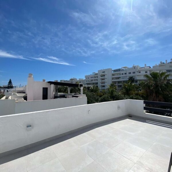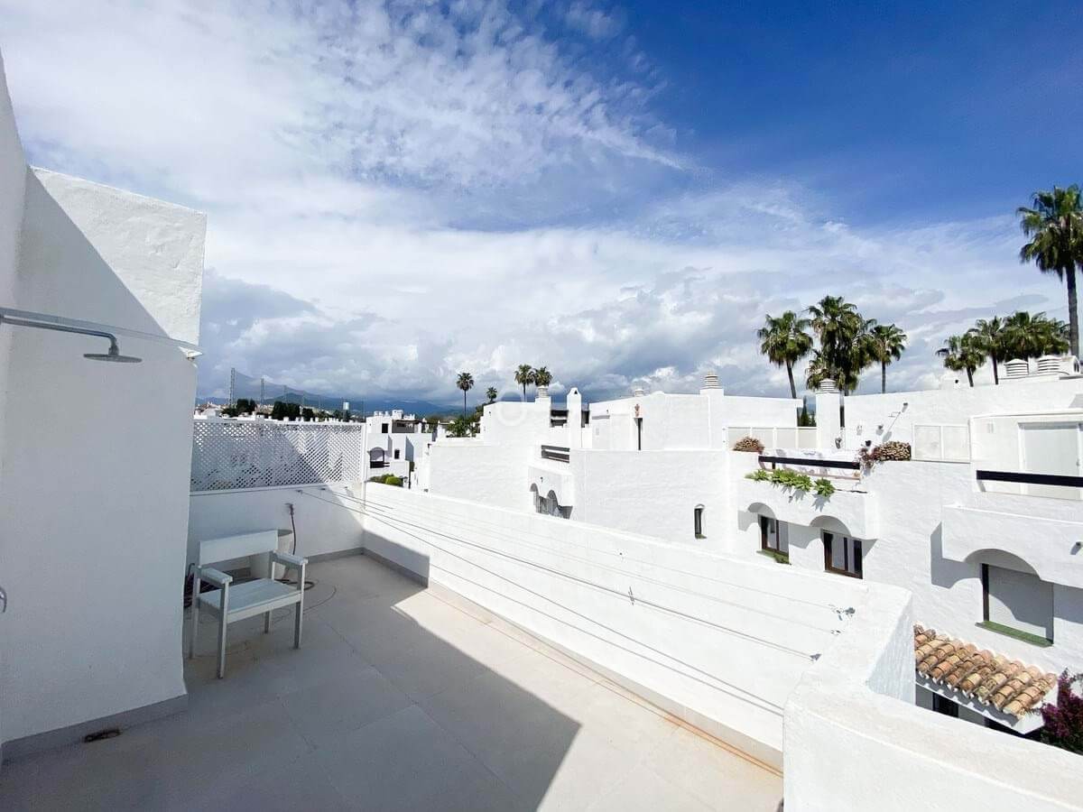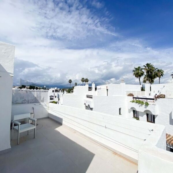 Prezentujemy ten elegancki dom w zabudowie bliźniaczej położony w ekskluzywnej urbanizacji w obszarze Linda Vista, po stronie plaży San Pedro de Alcantara, uprzywilejowanej lokalizacji w Marbelli, zaledwie 100 metrów od plaży.