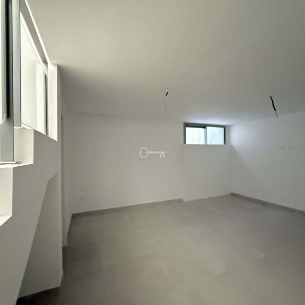 The house stands out for its contemporary design, spacious layout, and abundant natural light. The entrance hall leads to a living room with ceilings over 3 meters high, seamlessly connecting to the dining area and a designer open-plan kitchen equipped with high-end NEFF appliances. Adjacent to the kitchen is a small terrace, while the living room opens to a large terrace and private south-facing garden. A guest toilet completes this floor.