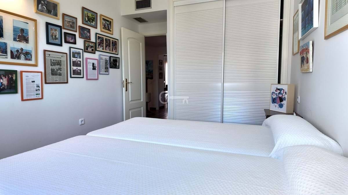 On the top floor, stairs lead to a very spacious master bedroom with en-suite bathroom and a third private terrace. The urbanisation does not permit short-term rentals, ensuring a quieter environment throughout the year without the seasonal overcrowding common in many beachside communities.