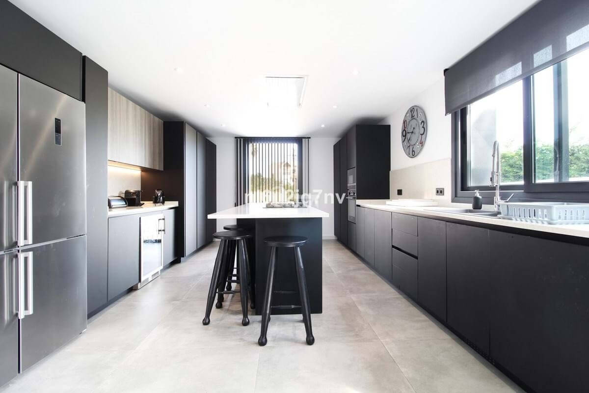 Crafted with top-quality materials, the villa features three spacious bedrooms and three fully equipped bathrooms and a guest toilet.. Enjoy a grand, state-of-the-art kitchen, open plan living /dining area, a modern fireplace, and a BBQ area, beautifully illuminated by LED lighting throughout. The stunning terrace leads to a fantastic swimming pool with shallow area and lush garden, highlighting the villa’s minimalistic design and large windows that enjoy abundant natural light.