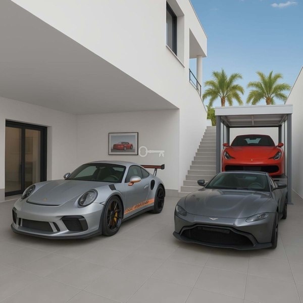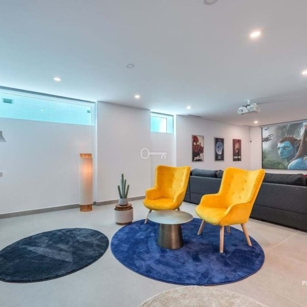 Piwnica przekształca się w prywatne sanktuarium odnowy biologicznej i rozrywki z kinem domowym, przestronną siłownią z lustrzanymi ścianami, sauną i strefami relaksu. Część piwnicy została pierwotnie zaprojektowana jako garaż pokazowy, a nieruchomość obejmuje przygotowanie konstrukcyjne do windy samochodowej, co pozwala na zmianę przeznaczenia przestrzeni na ekspozycję samochodową lub przechowywanie luksusowych pojazdów. Obecnie jest to strefa rekreacyjna dla dzieci, idealna dla rodzin.