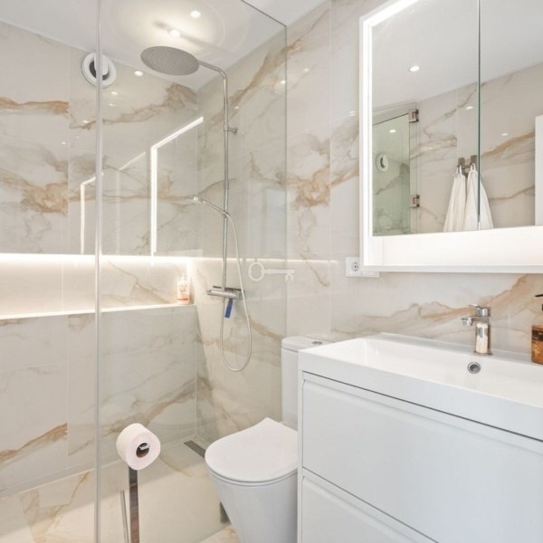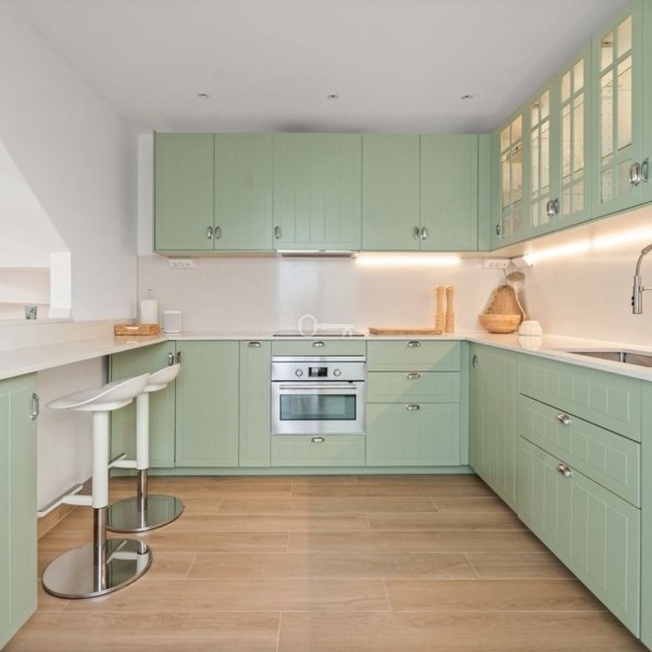 Na głównym piętrze naturalne światło wypełnia przestronny salon i jadalnię, która otwiera się na piękny prywatny taras / ogród o powierzchni 34 m², idealną przestrzeń na świeżym powietrzu, aby cieszyć się śródziemnomorskim klimatem. Niezależna nowo wybudowana kuchnia ma bezpośredni dostęp do salonu i jadalni, stylowej łazienki z prysznicem i pralni.