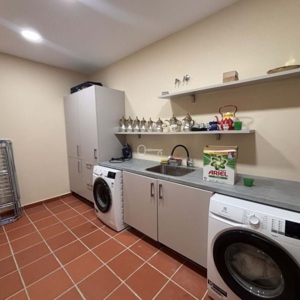 Piwnica (299,75 m²): obejmuje zadaszony garaż z miejscem na 3 lub 4 samochody, piwniczkę na wino, pokój gier, siłownię, pomieszczenie gospodarcze, pralnię, pomieszczenie gospodarcze, łazienkę, toaletę dla gości i dwa dodatkowe pokoje używane jako sypialnie.