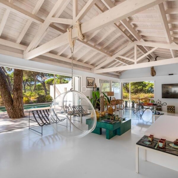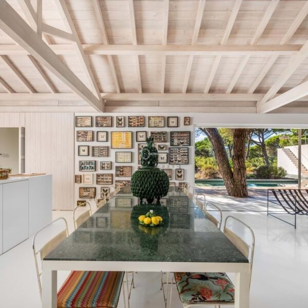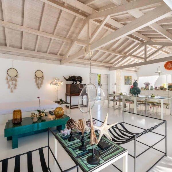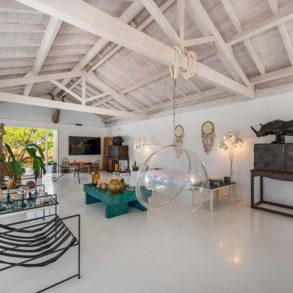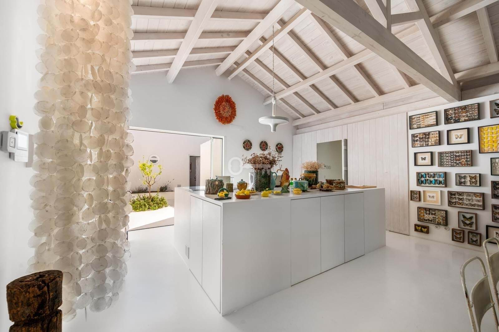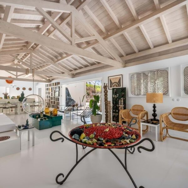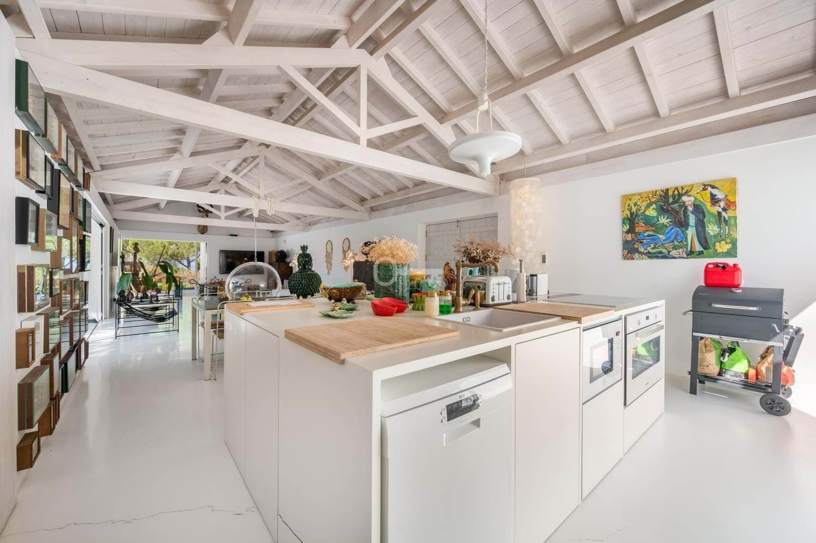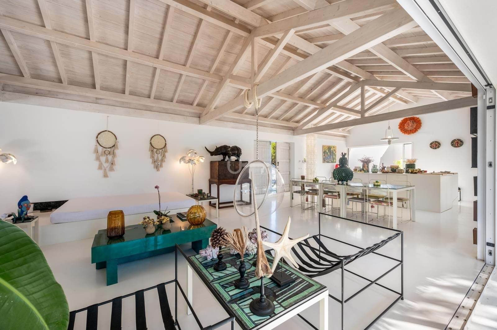 Spacious and inviting social area: Open-plan living room and kitchen with large sliding doors opening onto the terraces and pool. Perfect for memorable parties and gatherings.
