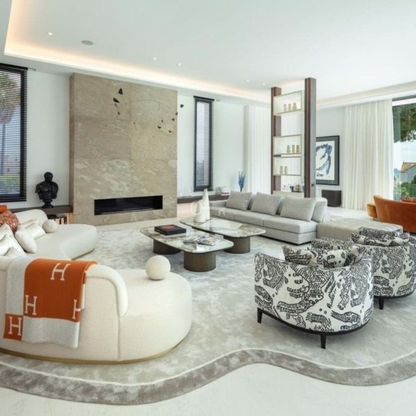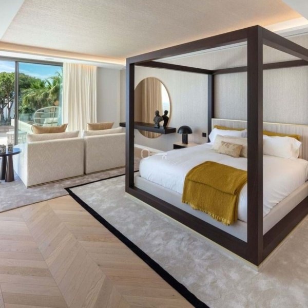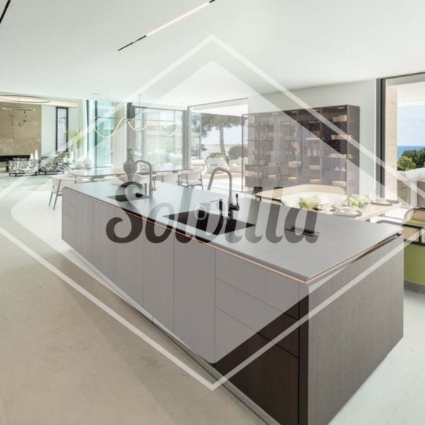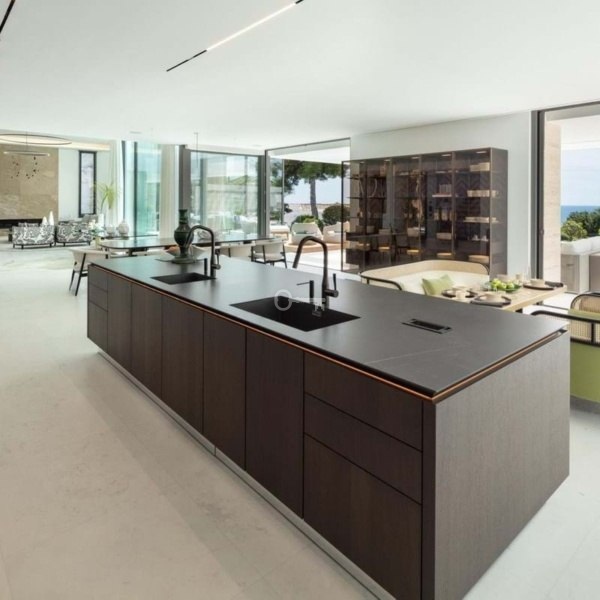 Na trzech poziomach znajduje się otwarta przestrzeń mieszkalna z wysokimi sufitami i oknami sięgającymi od podłogi do sufitu, wysokiej klasy kuchnia SieMatic ze sprzętem Wolf i SubZero oraz wspaniały apartament główny z widokiem na morze i łazienką przypominającą spa. Na niższym poziomie znajduje się kino, bar, siłownia, prywatne spa, pomieszczenia dla personelu i garaż na pięć samochodów.