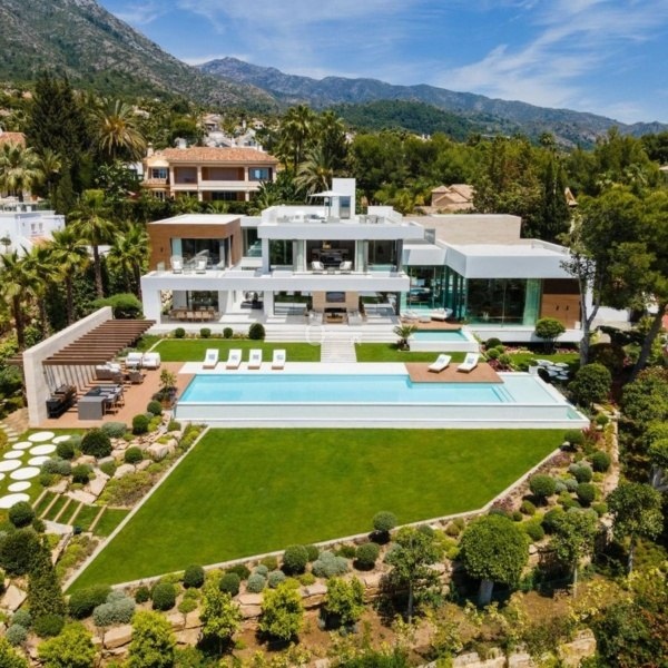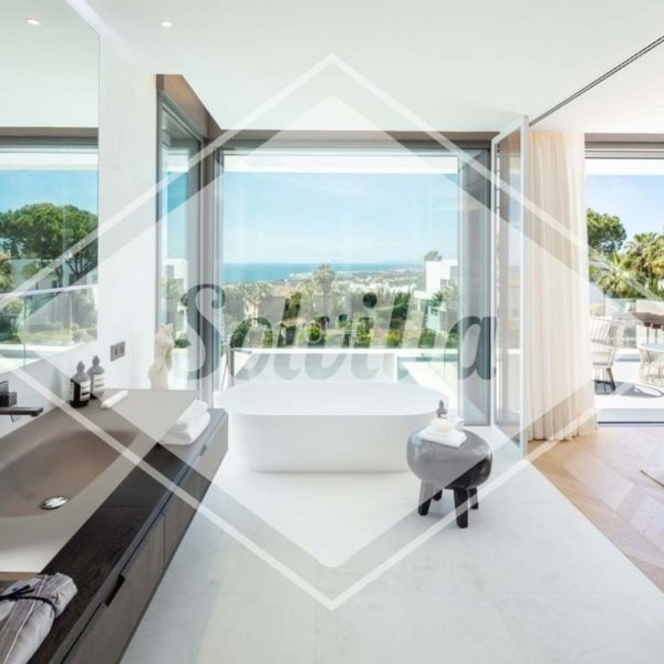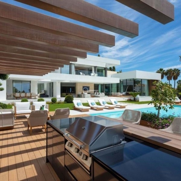 Bujne ogrody z tropikalnym krajobrazem, elementami wodnymi oraz andaluzyjskimi drzewami cytrynowymi i oliwnymi otaczają dom. Życie na świeżym powietrzu obejmuje basen bez krawędzi, rozległe tarasy, grill i kuchnię idealną do rozrywki przez cały rok.