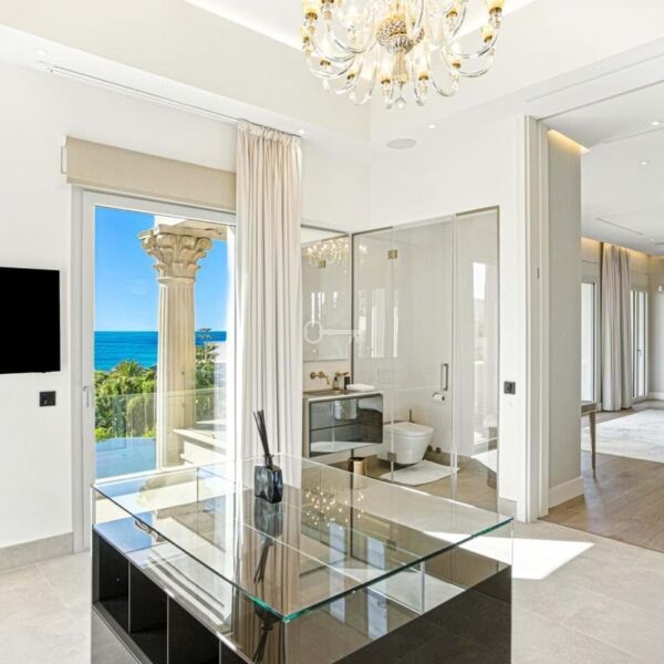 Unikalna architektonicznie nieruchomość od strony południowej położona w ekskluzywnej zamkniętej społeczności Sierra Blanca na prestiżowej Golden Mile w Marbellas. Ta zupełnie nowa rezydencja oferuje wyjątkowy design, panoramiczne widoki na morze i góry, całodobową ochronę i znajduje się zaledwie kilka minut od światowej klasy plaż, pól golfowych, międzynarodowych szkół, wyśmienitych restauracji i przepychu Puerto Banús. Zaprojektowana, aby zaimponować, willa łączy odważne współczesne linie z ponadczasowym europejskim kunsztem. Luksusowe wykończenia obejmują najwyższej jakości podłogi z kamienia naturalnego, importowane kolumny z francuskiego wapienia, niestandardowe szafy Rimadesio, włoskie drewniane drzwi i niemieckie okucia.