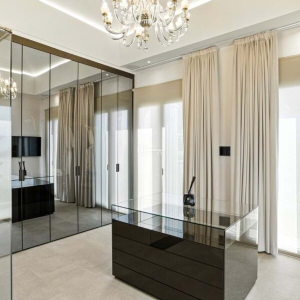 Rozciągający się na czterech poziomach i połączony wysokiej klasy windą dom obejmuje siedem sypialni, w tym spektakularny apartament główny z prywatnym tarasem i garderobą. Rozległe salony i jadalnie, najnowocześniejsza kuchnia i dwie piwnice na wino sprawiają, że jest to idealne miejsce zarówno dla wygody, jak i rozrywki. Wyróżniające się funkcje obejmują strefę wellness i rekreacyjną z prywatnym spa, w tym kryty basen z podgrzewaną wodą, siłownię, saunę i jacuzzi. Na pięknie zagospodarowanej działce znajduje się również jeden z największych prywatnych podgrzewanych basenów w Hiszpanii, otoczony spokojnymi miejscami do wypoczynku. Na dachu znajduje się wspaniała strefa rozrywki z kinem na świeżym powietrzu, kuchnią na świeżym powietrzu i rozległymi panoramicznymi widokami. Dodatkowe atrakcje obejmują w pełni inteligentny system automatyki domowej, wodne ogrzewanie podłogowe, szyby antywłamaniowe, rolety z napędem silnikowym, dwa niezależne apartamenty dla gości i przestronny prywatny garaż.