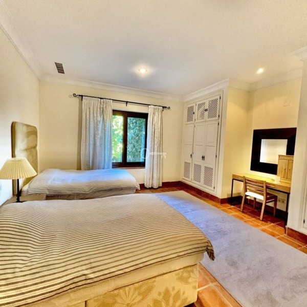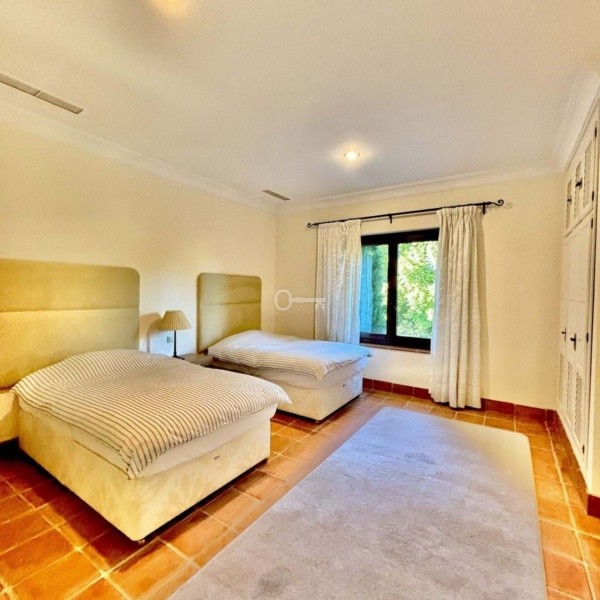 Ta luksusowa willa golfowa jest uosobieniem elegancji i wyrafinowania. Z 7 przestronnymi sypialniami i 8 pełnymi łazienkami, oferuje dużo miejsca dla dużej rodziny lub służy jako doskonała okazja inwestycyjna dla tych, którzy chcą wejść na rynek wynajmu. Położona w doskonałej lokalizacji nieruchomość oferuje zapierające dech w piersiach panoramiczne widoki na morze, zapewniając spokojne i malownicze tło.