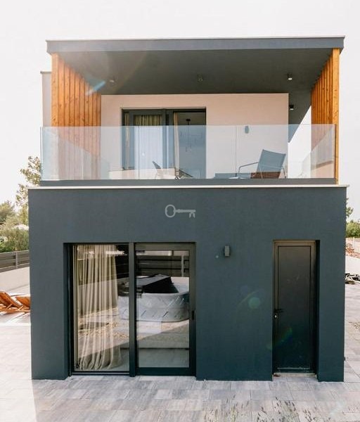 Willa jest położona w malowniczej miejscowości Srima, niedaleko centrum Vodic. Znajduje się w spokojnej, nowoczesnej okolicy, wśród innych ekskluzywnych willi o miejskiej architekturze.