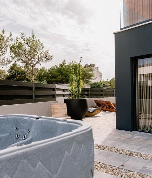 *strefę wypoczynkową na świeżym powietrzu z grillem, jacuzzi i słonecznym tarasem.