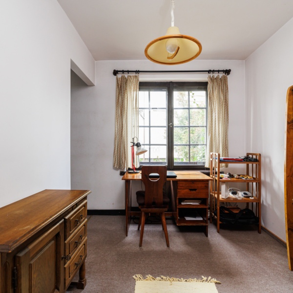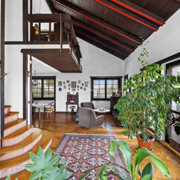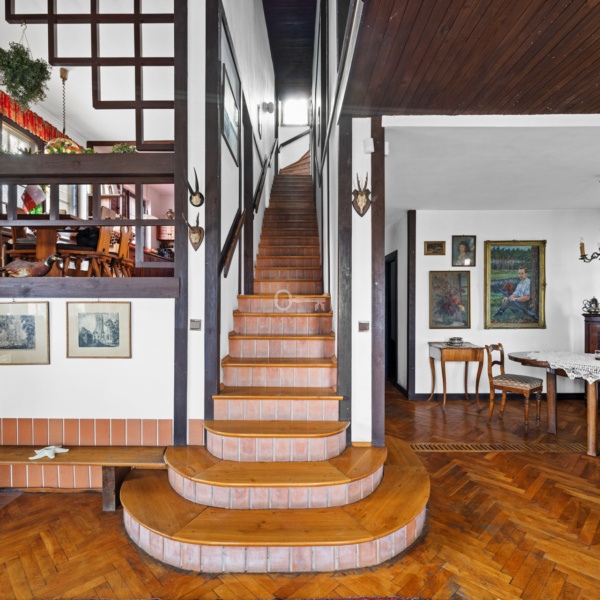 Dom wolnostojący z 1990 r. znajduje się na działce 394 o powierzchni m2. Budynek posadowiony jest na schodzącym w dół terenie, który został profesjonalnie zazbrojony i zabezpieczony solidną płytą żelbetową. Układ funkcjonalny domu powoduje, że do kolejnych pomieszczeń i poziomów schodzimy na dół, a nie do góry – co tworzy unikalne wrażenia i pozwala na oszałamiającą aranżację.