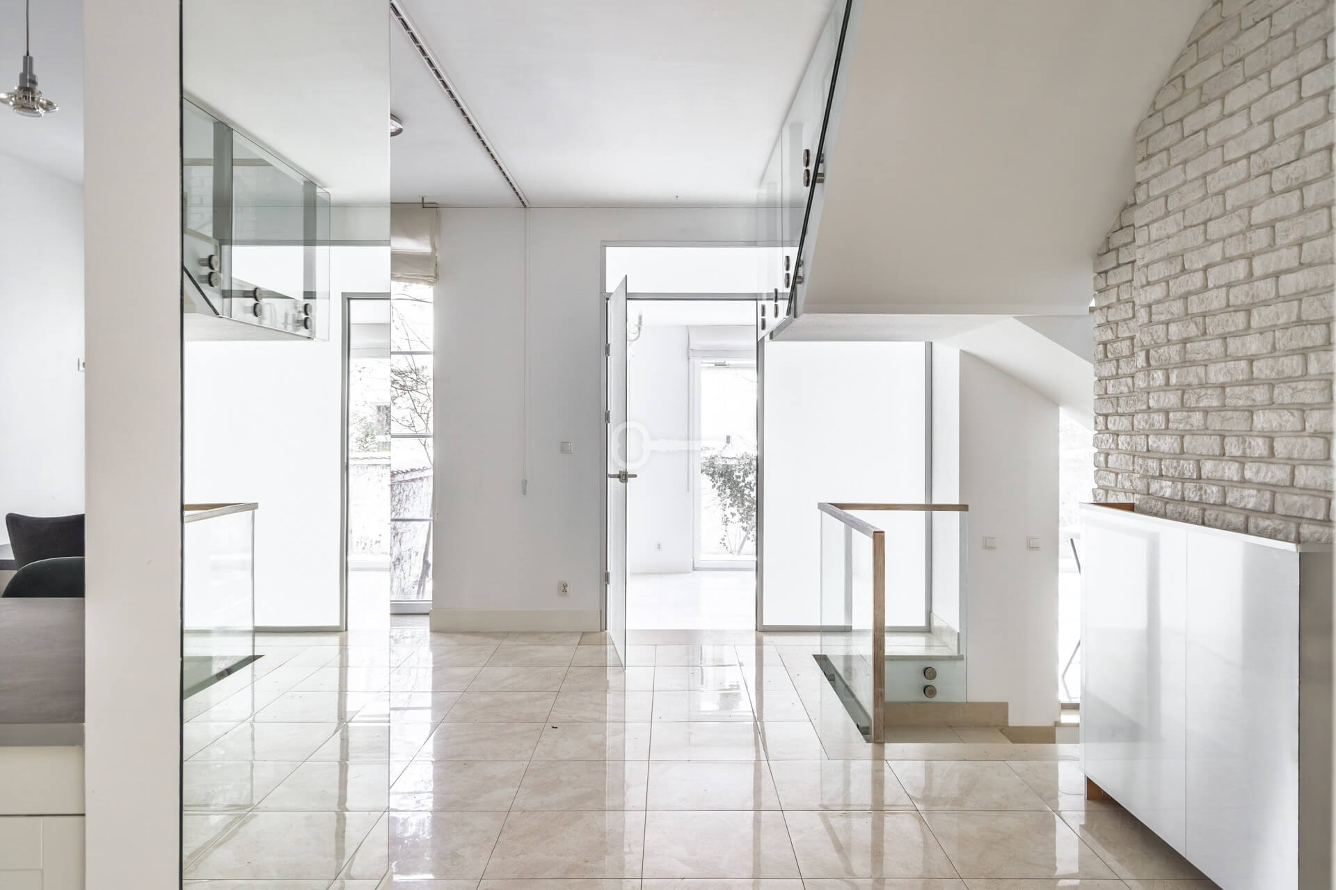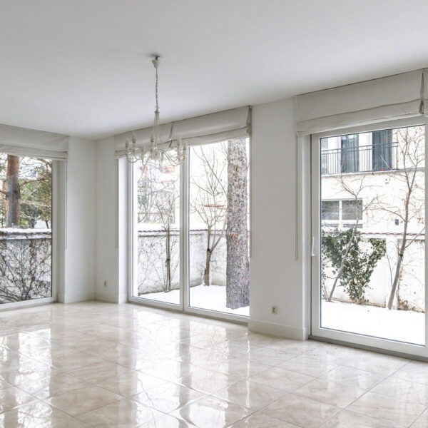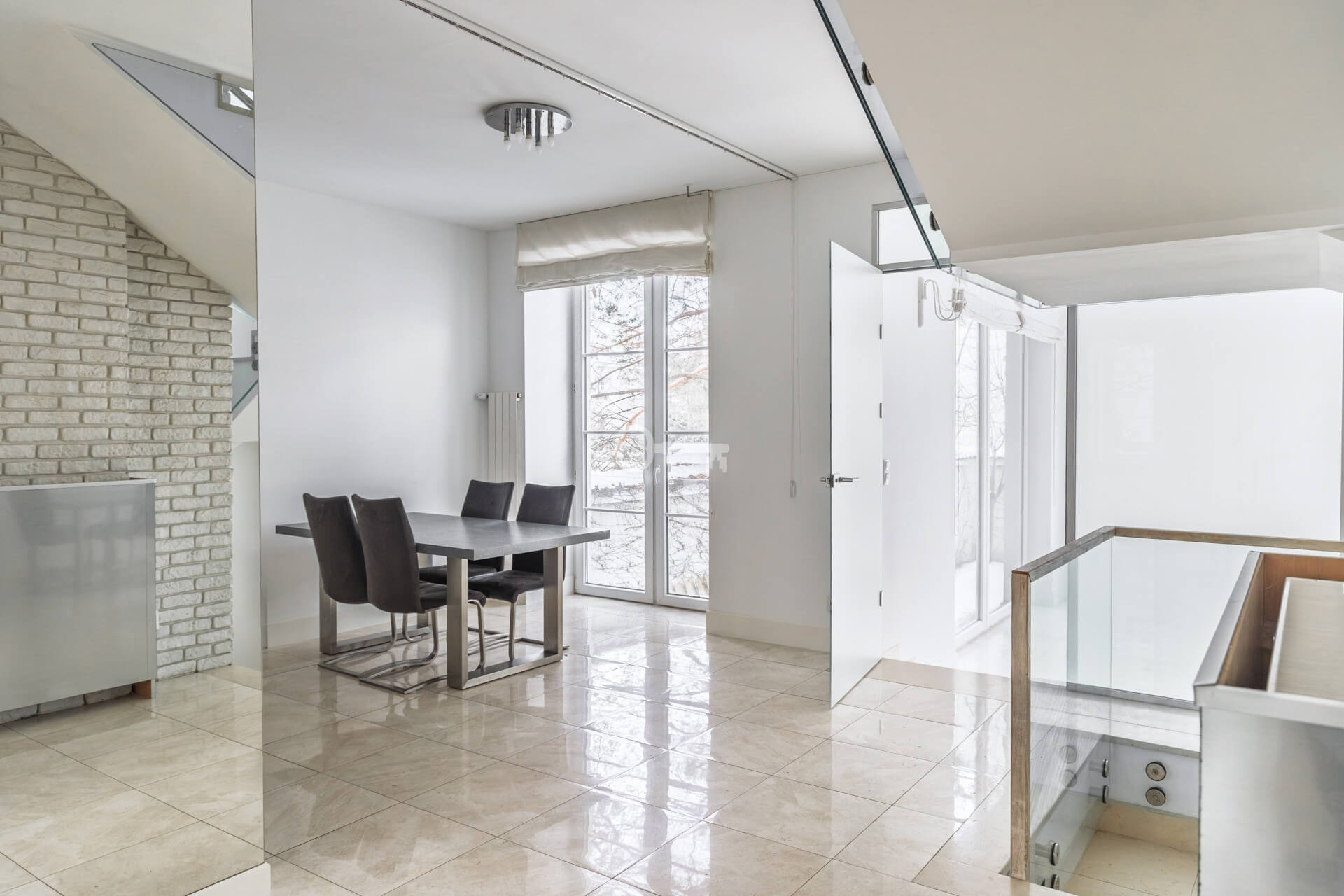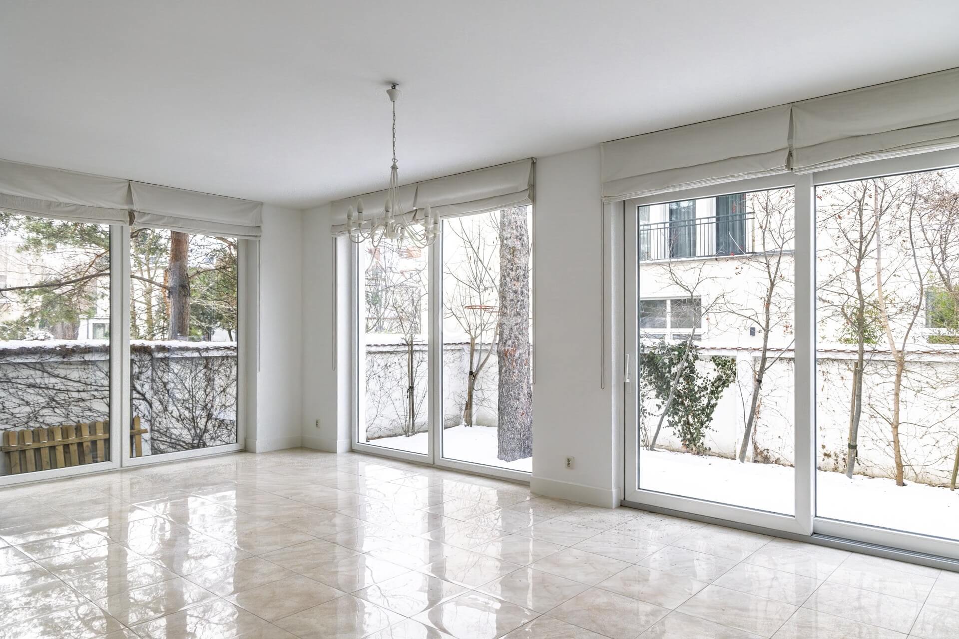 * salon z panoramicznymi oknami,