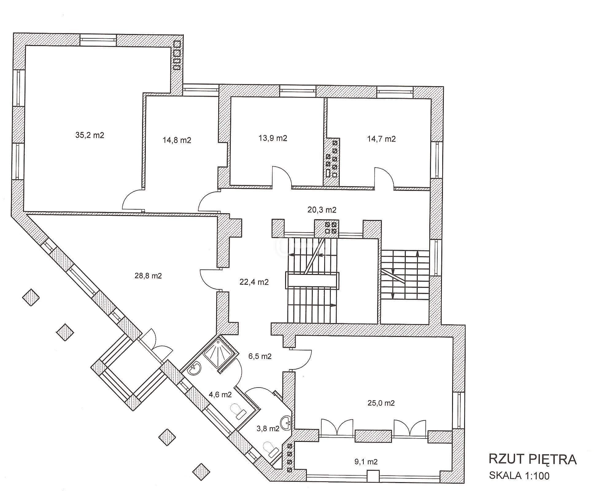 * pokój 2 obecnie podzielony na dwa pomieszczenia – recepcję i gabinet (50m2),