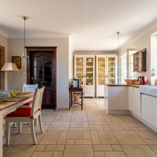 Z widokiem na ogród, pełen nasadzeń i stary orzech, którego liście w zależności od pory roku tworzą niezwykłe pejzaże – niczym malowane – jest miejscem spotkań najbliższych i biesiadowania (nie tylko w okresach świątecznych).