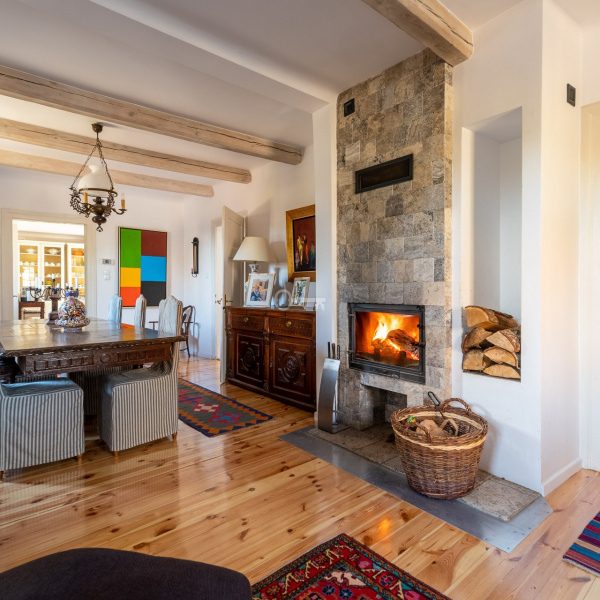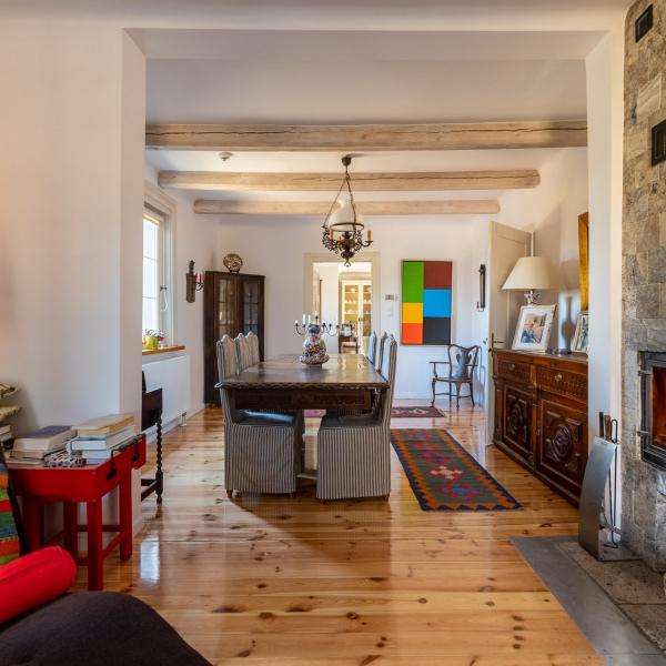Pięknie, klimatycznie ale i funkcjonalnie. Dom pomimo charakteru weekendowego – to całoroczna posiadłość, która może być miejsce na stałe. Przez ostatnie lata pieczołowicie restaurowany, odnawiany i unowocześniany, łącznie z wymianą wszelkich instalacji. Sam dom posiada 3 systemy grzewczy: dwa piece kaflowe, kominek pozwalający na ogrzewanie drewnem, połączony z systemem rozprowadzania ciepła, a przede wszystkim ogrzewanie na olej ( piec olejowy marki Wolf zainstalowany w 2019r.). Zimną świetnie ogrzewany a latem – uciekając przed upałami właściciele korzystają z klimatyzacji (zainstalowana w oranżerii jak i na piętrze).