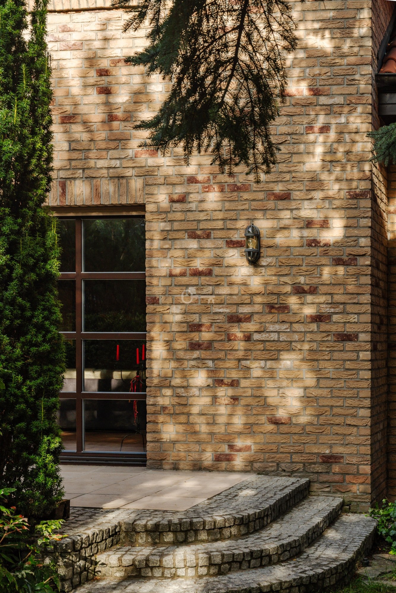 * Ściany: bloczki Ytong Hebel 40 cm + cegła klinkierowa Mosa (Belgijska Vandersanden).