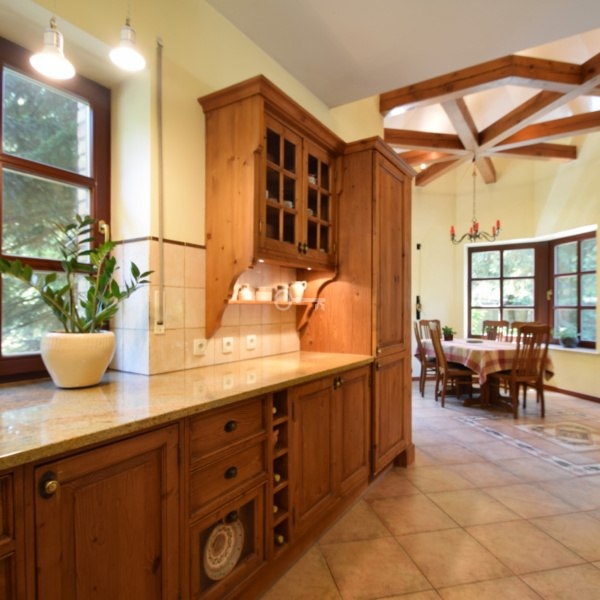 * Stolarka drzwiowa i okienna w całości z mahoniu.