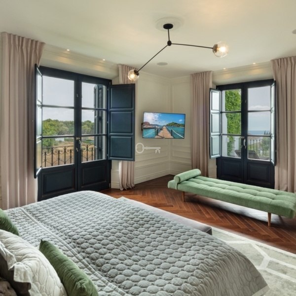 Dom składa się z siedmiu sypialni i sześciu łazienek oraz dwóch dodatkowych toalet dla gości. Rozległa główna sypialnia oferuje wspaniałe widoki na morze i obejmuje przestronny prywatny taras, elegancką łazienkę i elegancką garderobę. Dodatkowe sypialnie są równie ozdobione wyrafinowanymi wnętrzami, zapewniając zarówno styl, jak i komfort.